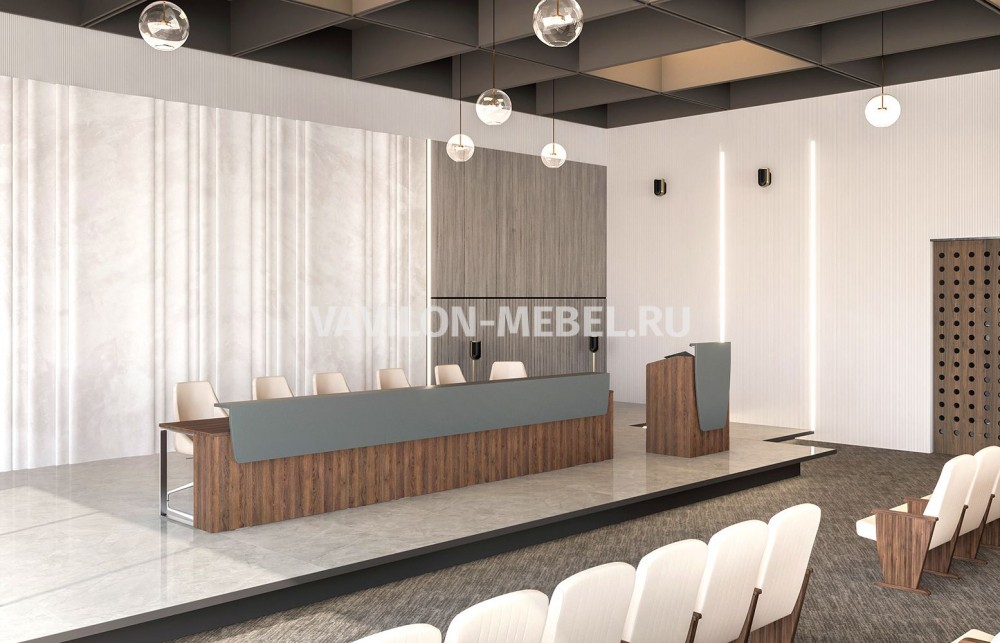 • Модульная конструкция позволяет создать стол президиума необходимой конфигурации на требуемое количество посадочных мест для конференц-залов.