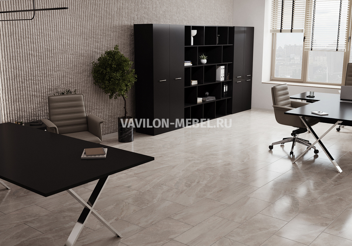 Использование материалов Fenix и Ultramatt обеспечивает не только визуальную эстетику, но и приятные тактильные ощущения, что придает кабинету особую утонченность.