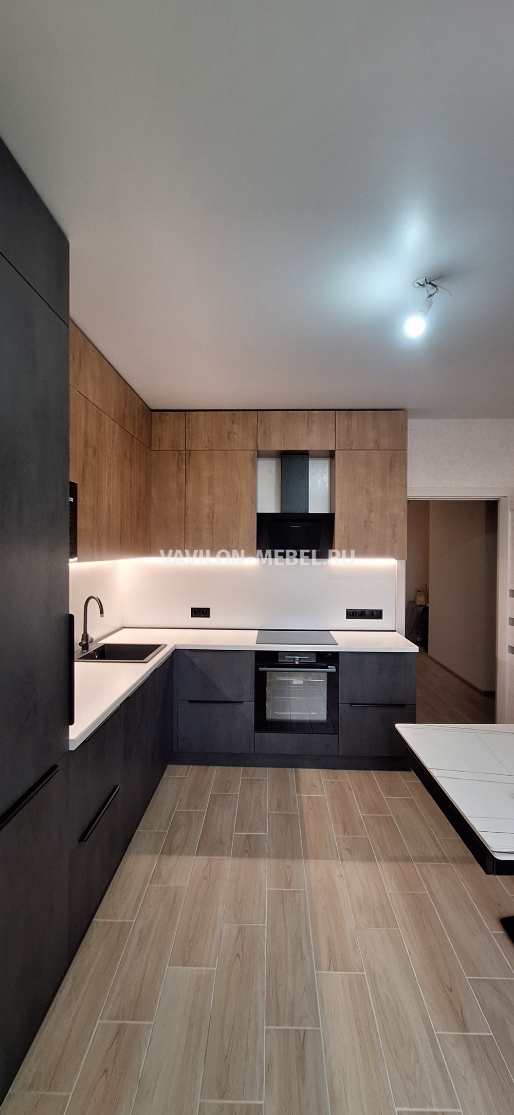 Угловое размещение гарнитура позволяет экономить место, что может быть важно, если квартира небольшая, а кухня совмещена с гостиной. Но жертвовать эстетикой не нужно: яркие акценты позволят сделать пространство жизнерадостным.